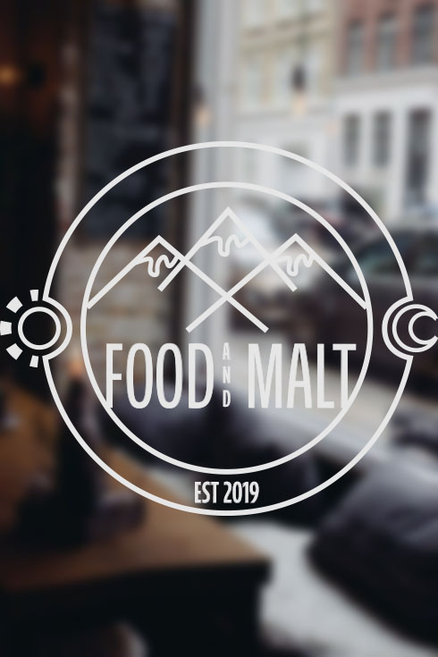 In my sketching process I first drew out some bits without looking up inspiration, I played with letter placement, small doodles and came up with this simplified mountain made up of F,A and M. Later I looked at logos, styles and uses from Anders’ past experience, since Food and Malt is similar to those businesses. Then I looked up some references for how I should build my logo and looked for details that I hadn’t thought off during my first sketching.